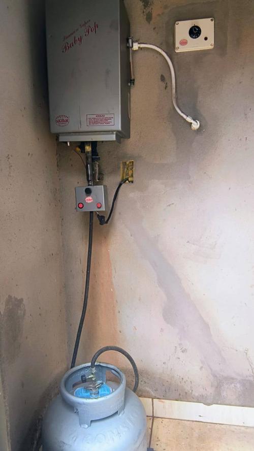 Área gourmet com churrasqueira e ducha
